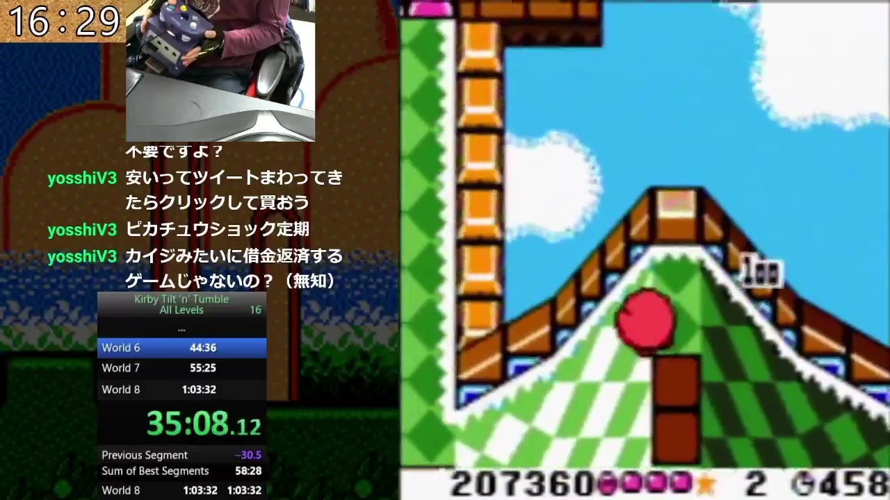 Rta In Japan No Twitter 現在のタイムアタックは コロコロカービィ スタートしました はるともさんいわく 本体だけで完結する 大切なのはフィジカル とのこと すごい絵面ですが 見事にカービィを転がしていきます 配信はこちらから T Co